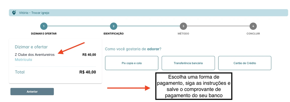 O pagamento deve ser feito através do sistema 7me. Após realizá-lo, salve o comprovante de pagamento na próxima etapa.